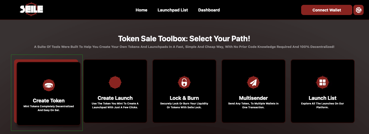 1. Press/select the "Create Token" button and you'll be redirected to this link: <https://seile.xyz/create/token>.